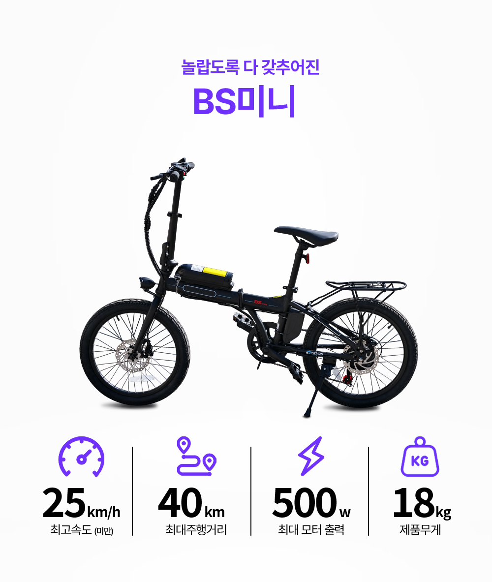 이지베이션 BS미니 전기자전거 18kg 36V 500W 접이식 자전거 배터리 탈부착